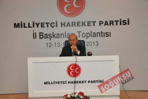 Toplantıda, il başkanlarının fikirlerini, yaşadıkları şehirlerle ilgili sorunları paylaştıklarını ve beklentileri dile getirdiklerini söyleyen Bahçeli, "Ayrıca partimizin Başkanlık Divanı üyesi değerli arkadaşlarım tarafından, ekonomideki gelişmeler, biriken riskler ve takip edilen politikalardaki yanlışlıklar anlatılmış, Mahalli idareler seçimiyle ilgili hazırlıkların seyri ve Yeni Büyükşehir Belediye Kanunu'nun mahsurları ve neden olacağı tehlikeler ayrıntılı şekilde izah edilmiş, TBMM'deki siyasi çalışmalar, parti grubu faaliyetleri dile getirilmiş ve Anayasa hazırlığı konusunda bilgilendirmeler yapılmıştır. Bunların yanı sıra, bölücü terör konusu, PKK'yla yürütülen müzakereler, bölgesel ve küresel bağlamdaki ülkelerarası münasebetler de değerlendirmelerimiz arasında bulunmuştur" diye konuştu.