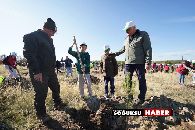 Kızılcahamam orman fidanlığında yetişen ağaçlar orman işletme müdürlüğü ile birlikte tüm ülkede eş zamanlı düzenlenen 11 Kasım fidan dikim seferberliği gerçekleşti.