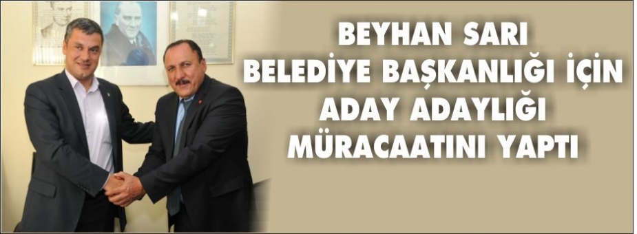 Ak Parti İlçe Başkanlığına yapılan müracaatlar 1 Kasım 2013 tarihinde sona eriyor. Bugün öğle saatlerinde İlçe Başkanlığına gelerek Kızılcahamam Belediye Başkanlığı Aday Adaylığını için müracaat eden Kızılcahamamlılar Derneği Başkanı ve Kazan Belediye Başkan Yardımcısı Beyhan Sarı evraklarını İlçe Başkanı Sefa Yıldırım’a teslim etti.