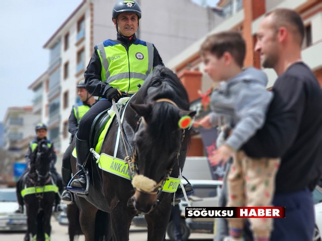 Ankara İl Emniyet Müdürlüğü bünyesinde görev yapan atlı polis ekipleri, ilçe merkezinde cadde ve sokakların yanı sıra Soğuksu Milli Parkı’nda da vatandaşlarla bir araya geldi.