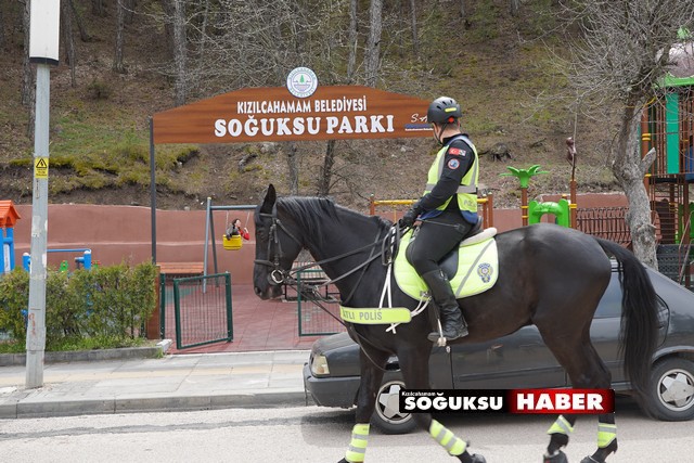 Doğayla iç içe yapısıyla bilinen Kızılcahamam’da atlı polislerin hem şehir merkezinde hem de milli parkta görülmesi, günün dikkat çeken anları arasında yer aldı.
