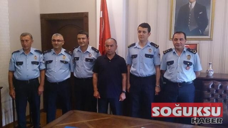 Emniyet Müdürlüğü rütbesine terfi eden Barış Erkol'a yeni rütbesini İlçe Kaymakamı Mustafa ÇİT taktı. İlçe Kaymakamı Mustafa Çit; Barış Erkol'u tebrik ederken, yeni rütbesinde başarılar diledi.