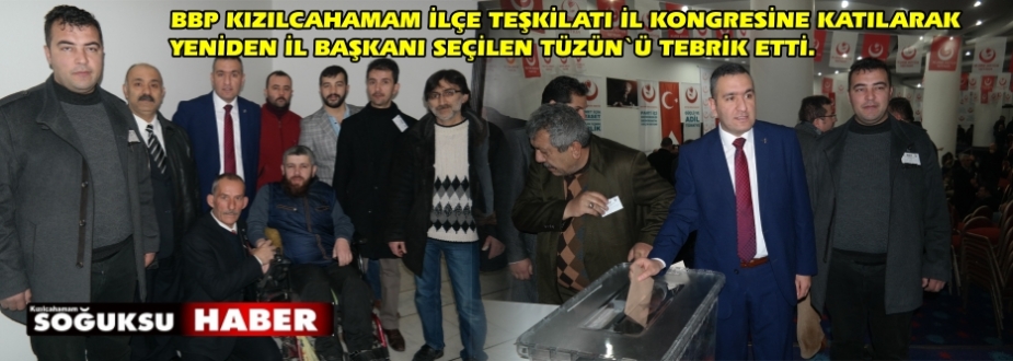 Büyük birlik Partisi 5.Olağanüstü Ankara İl Kongresi Sıhhıye'de bulunan Sürmeli Otel'de yapıldı. Kızılcahamam Büyük birlik Partisi İlçe yöneticileri İl kongresine katılarak İl Başkanlığına yeniden seçilen Gökhan Tüzün'ü tebrik etti.