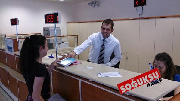 Türkiye İş Bankası Kızılcahamam Şubesi, çocuklara karne hediyesi olarak kitap hediye ediyor.
