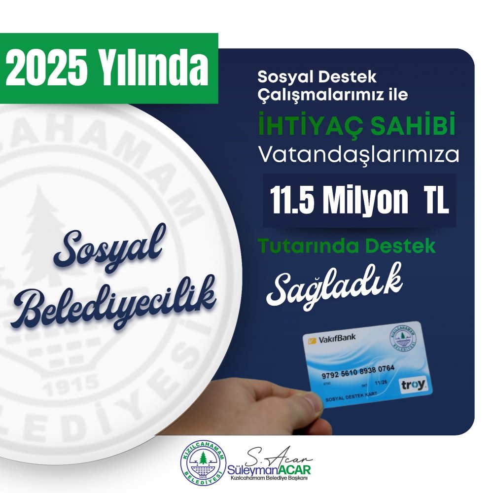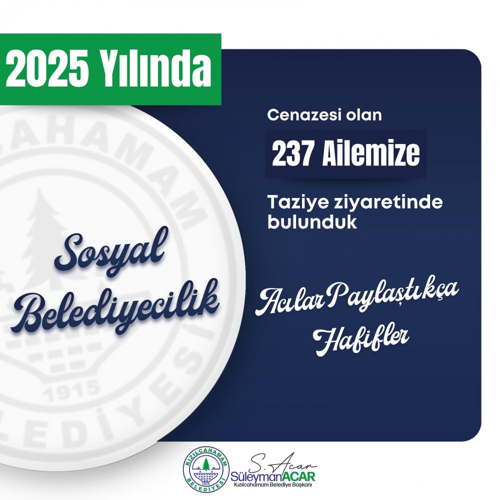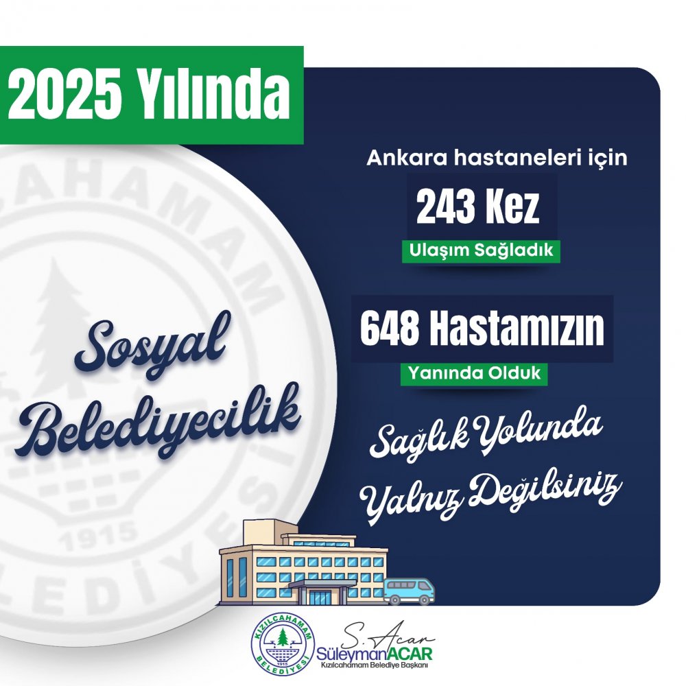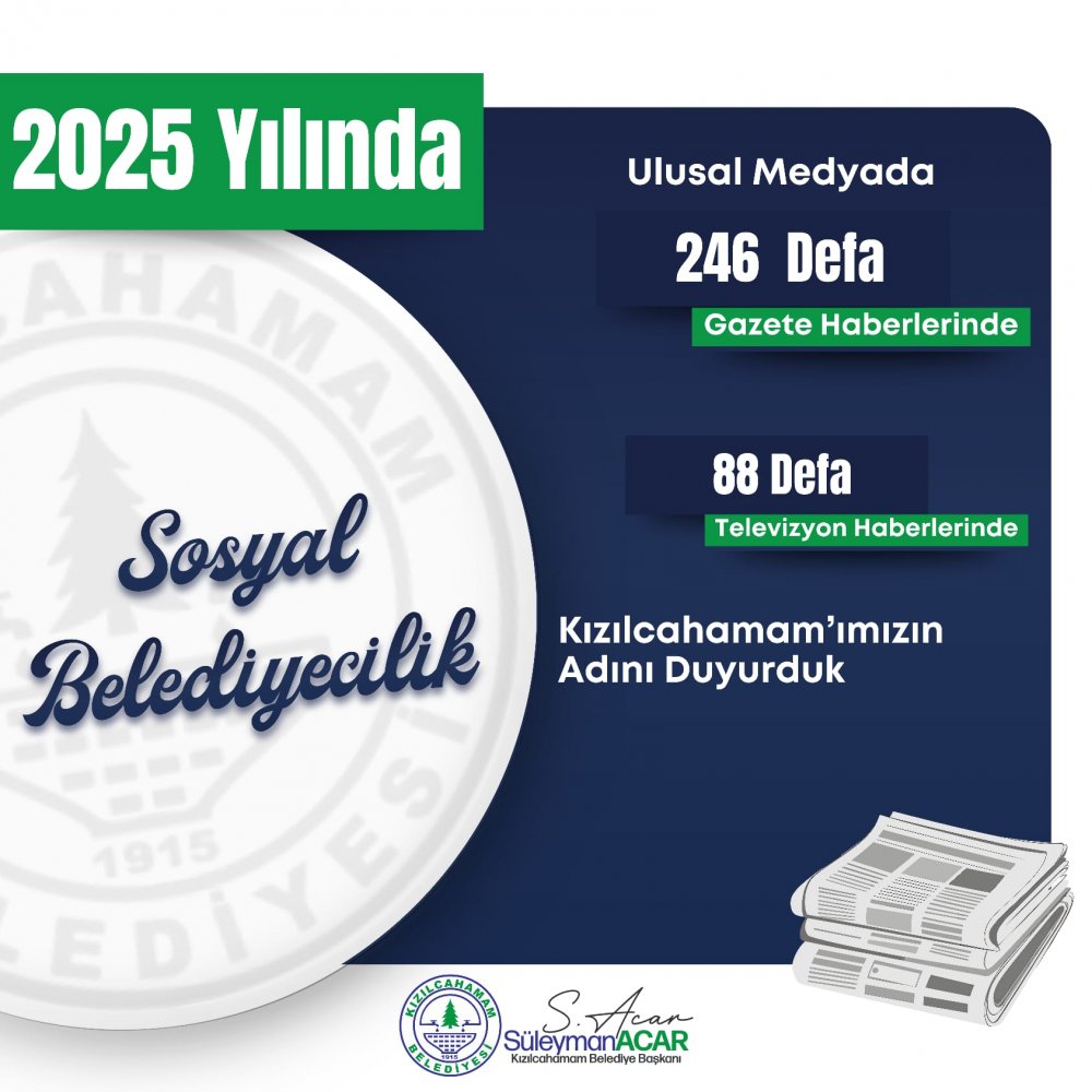 2025 yılını değerlendiren Kızılcahamam Belediye Başkanı Süleyman Acar; "Hamdolsun, sabrın ve gayretin hâkim olduğu 2025 yılını başarıyla geride bıraktık. İnsanı merkeze alan hizmet anlayışımızla sadece binalar inşa etmedik, gönüllere dokunduk. Kızılcahamam’ın geleceğini inşa etmeye devam ediyoruz." ifadelerini kullandı.