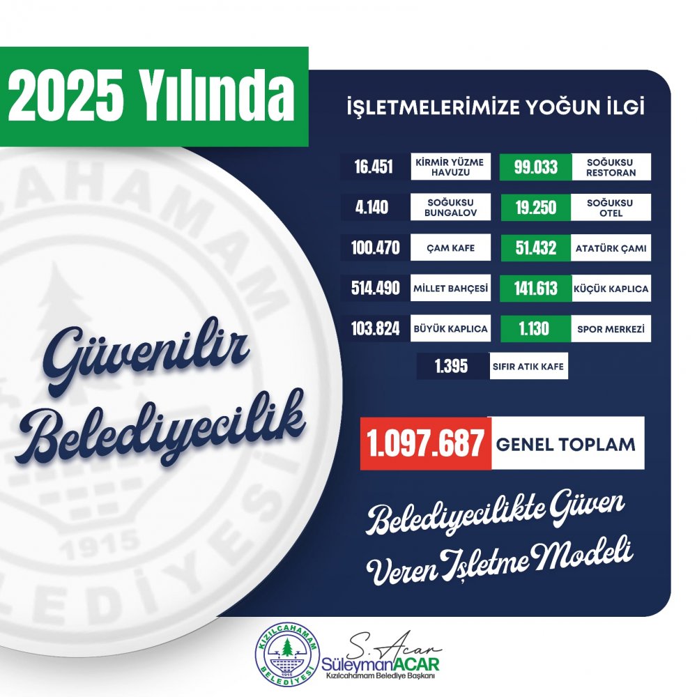 Kızılcahamam Belediyesi, 2025 yılı boyunca yürüttüğü faaliyetleri ve ilçenin çehresini değiştiren projeleri sayısal verilerle kamuoyuna duyurdu. Belediye Başkanı Süleyman Acar liderliğinde "Gönül Belediyeciliği" vizyonuyla hareket eden belediye, bütçe yönetiminden sosyal projelere kadar pek çok alanda hedeflerini aşmayı başardı.