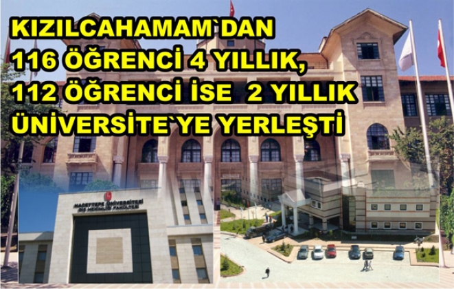 Kızılcahamam’dan LYS’ye giren öğrencilerin yapmış oldukları tercih sonuçlarına göre 228 öğrenci üniversiteye yerleşti. İlçemizden Toplamada 437 öğrencinin üniversite sınavına girdiği belirtilerek 4 yıllık ve 2 yıllık kazanan öğrencilerimizin başarı seviyesi ne göre yapılan araştırmamızda;