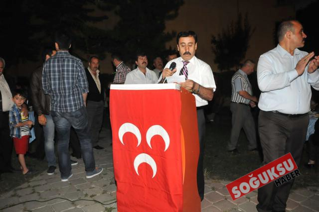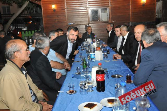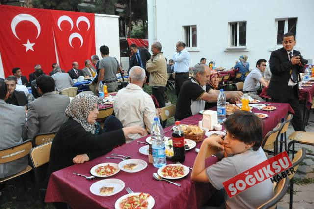 İftar yemeğinde Emekli İmam İsa ersin tarafından Kur'an-ı Kerim Tilaveti okunarak hep birlikte iftar yapıldı. Birlik beraberlik mesajlarının verildiği iftar yemeğinde, açılış konuşmasını yapan İlçe Başkanı Uğur Tekin; İftar yemeğine katılan herkese teşekkür ederek Ramazanlarını tebrik ederek, yaklaşan Ramazan bayramını kutladı. Ardından sırasıyla selamlama konuşmaları yapan Eski milletvekili Mehmet Arslan ve Bölge Milletvekili Mustafa Erdem katılımcıların birlik ve beraberliklerinin daim olmasını ve ramazan ayının mübarek olmasını dilediler.