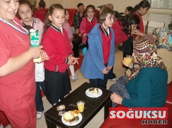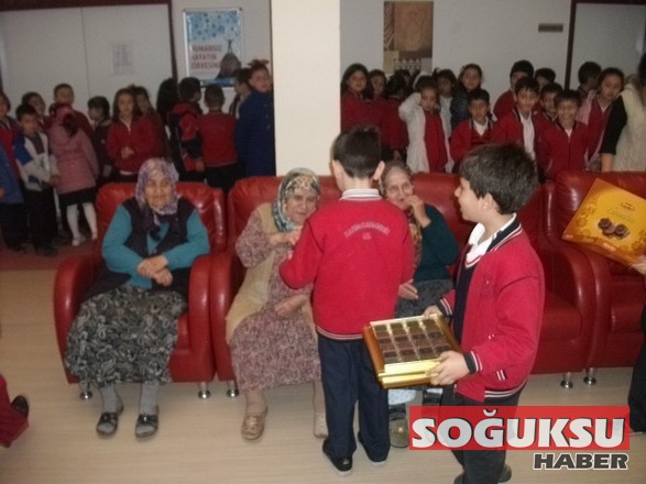 İlçemiz Huzurevi Yaşlı Bakım ve Rehabilitasyon Merkezini ziyaret eden öğrenciler burada yöneticiler tarafından karşılandı. Yöneticiler öğrencilere ve sınıf öğretmenlerine huzurevinde yaşayan yaşlıların durumları ve yaşlılara sunulan hizmetler hakkında bilgi verdi. Ardından huzurevi sakinleri ile görüşmeye başlayan öğrenciler, yaşlılarla yakından ilgilenip, onlara evde yaptırdıkları yiyecekleri ikram edip hoşça vakit geçirdiler.