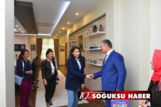 Ankara Üniversitesi Kızılcahamam Meslek Yüksekokulu öğrencileri, Meslek Yüksekokulu Müdiresi Prof. Dr. Seyhan Akıska, Müdür Yardımcısı ve Öğretim Görevlisi Dr. Ayşe Göktaş, Müdür Yardımcısı ve Öğretim Görevlisi Seher Erol Çelik, Öğretim Görevlisi Şeyda Cuma, Yüksekokul Sekreteri Ferhat Çoban önderliğinde Kızılcahamam Belediye Başkanımız Muhittin Güney'i makamında ziyaret ettiler.