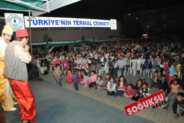 Cumartesi günü yapılan Ramazan eğlencelerinde sahne alan Hacivat Karagöz gölge oyunu, İbişle Memiş, çocuklara yönelik hediyeli yarışmalar ve gecenin son gösterisi Ateş dansı oldu. Kaplıca Parkını dolduran vatandaşlar ve çocuklar geç saatlere kadar eğlenceli dakikalar geçirdiler.