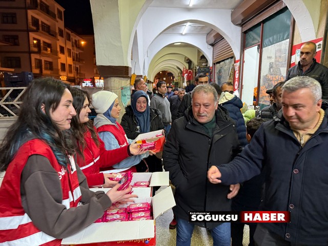 Kızılcahamamdaki tüm camilerde Regaip Kandiline özel olarak STK ve siyasi parti başkanlıkları tarafından vatandaşlarımıza çeşitli ikramlar dağıtıldı.