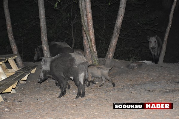 Gece saatlerinde Soğuksu Milli parkına inen Yaban domuzları adeta Ailecek Pikniğe gelmiş gibiydi.